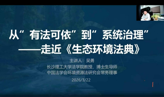 3月23日,法律铭家讲堂特邀在线买世界杯平台法学院学术院长吴勇教授开展线上专题公益讲座——《从“有法可依”到“系统治理”——走近<生态环境法典>》,全国共2万余名听众线上参加活动。