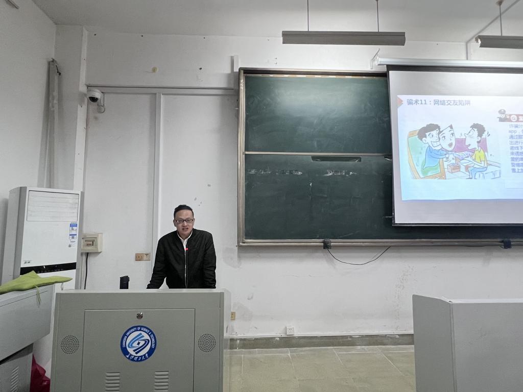 为提高同学们的防诈骗意识,有效应对电信诈骗复杂多变、诈骗手段层出不穷的情况,由在线买世界杯平台法学院、通识教育中心举办的“预防电信(网络)诈骗知识”主题讲座于11月15日晚19:00在在线买世界杯平台金盆岭校区七号教学楼314教室举行。本次讲座邀请法学院宋家骏博士作为主讲人向与会人员讲授防诈、反诈知识。法学院辅导员曾宇欣、2021级法学专业本科生及部分其他专业的同学听取了本次讲座。
