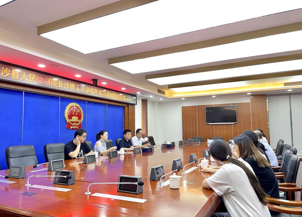 2021年7月9日,长沙县人民检察院与我院校外实习基地签约仪式在长沙县人民检察院前栋五楼会议室举行。长沙县人民检察院党组成员、政治部主任谢唯,第一检察部主任邓昂、副主任唐双燕,我院副院长申纯,教师代表阳明武、刘文莉出席仪式。