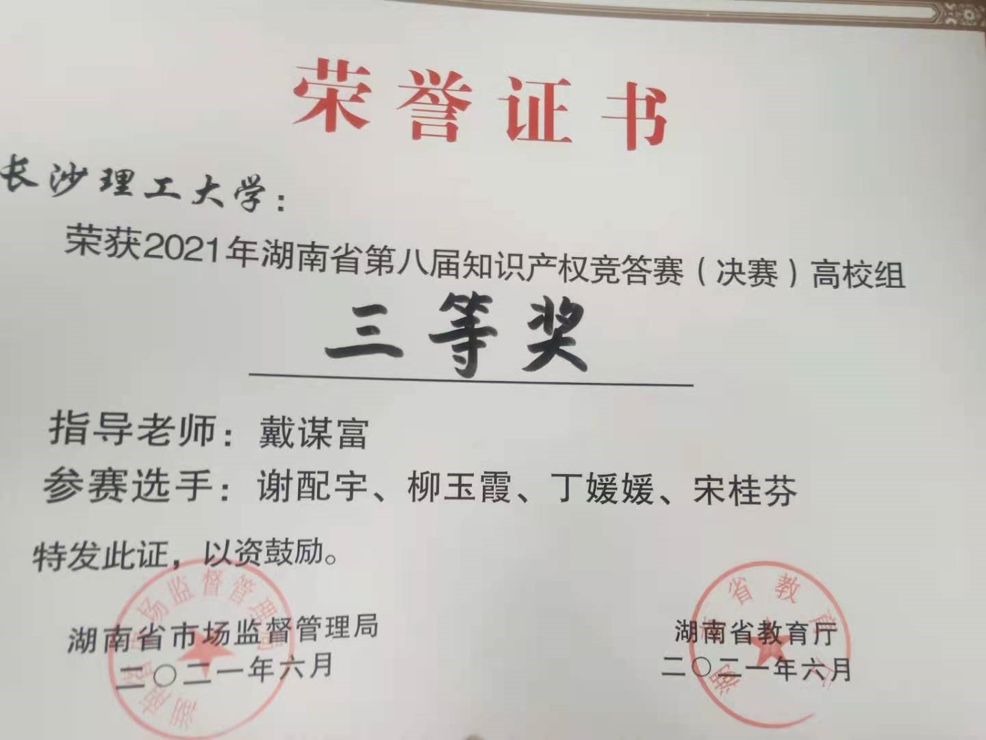 6月16日,第八届湖南省知识产权竞答赛决赛在湖南省市场监督管理局综合楼一楼礼堂成功举办,在戴谋富老师的带领下世界杯官网荣获“三等奖”。决赛竞赛赛制多元、赛题专业、赛程紧密,共设有“必答题”、“抢答题”、“你问我答题”、“风险题”和“加赛题”五个环节。在“必答题”和“抢答题”环节世界杯官网参赛选手沉着答题,各队竞争激烈,不分高下。接下来进行的“你问我答”环节中,世界杯官网参赛队员冷静分析赛场比分情况,挑选合适的队伍进行答题,这对于“风险题”环节的风险题的选择具有很大的影响。在“风险题”环节,世界杯官网参赛选手继续采取稳扎稳打的方式,经过商讨选择具有把握的题目进行作答,最后一举夺得胜利。世界杯官网参赛队员在赛场上具有临场迅速应变能力,逻辑严密,表达流畅,尽显风采,赢得现场一致好评,不仅反映出世界杯官网参赛队伍深厚的知识储备,也充分体现出了湖湘大地知识产权人才朝气蓬勃的精神风貌,呈现了一场精彩的知识产权文化盛典。(文/谢配宇 审/申纯)