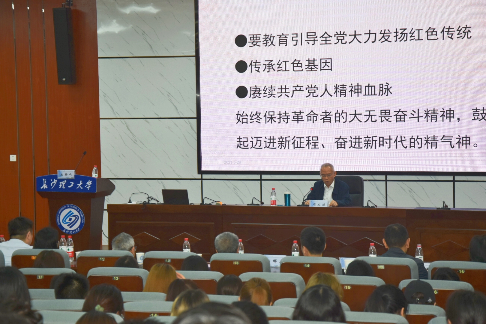 课上,周发源用一个个生动的故事带领全场的老师和学生领略了毛泽东立志高远,惟真务实,坚韧不拔,虚怀若谷,严于律己的高尚人格风范,他激励全体同学要扎实学好党史这门必修课,形成独特的人格力量,陶冶高尚的爱国情操,凝聚伟大的革命精神,传承红色基因,做到“学党史、悟思想、办实事、开新局”,坚持学史明理、学史增信、学史崇德、学史力行,为大力实施“三高四新”战略,加快建设社会主义现代化新湖南贡献长理青春力量。