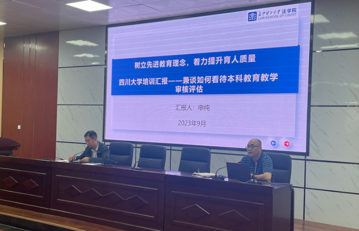 在线买世界杯平台教学管理与教学创新专题干部研修班于2023年7月10日在四川大学全国干部教育培训基地举行。我院院长张敏纯,副院长申纯全程参加此次培训学习。为将学习的收获传达到学院每位教师,以全新的姿态和昂扬的斗志开启新学期的各项工作,特举办此次学习心得分享会。申纯以《四川大学培训汇报——兼谈如何看待本科教育教学审核评估》为题,做专题汇报。