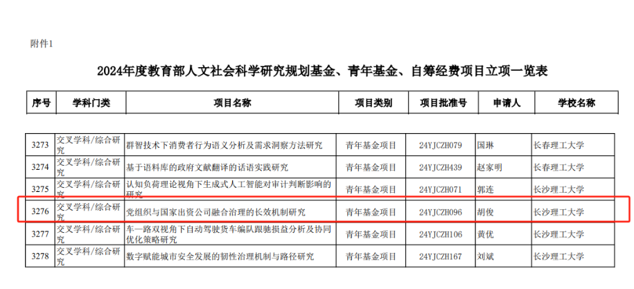 9月14日,全国哲学社会科学工作办公室公示了2024年度国家社科基金年度项目立项名单,我院尹迪博士、黎梦兵博士项目入选2024年国家社科基金青年项目立项公示名单。此前,教育部教育部社科司发布2024年度教育部人文社会科学研究一般项目立项通知,我院胡俊博士获批青年基金项目。