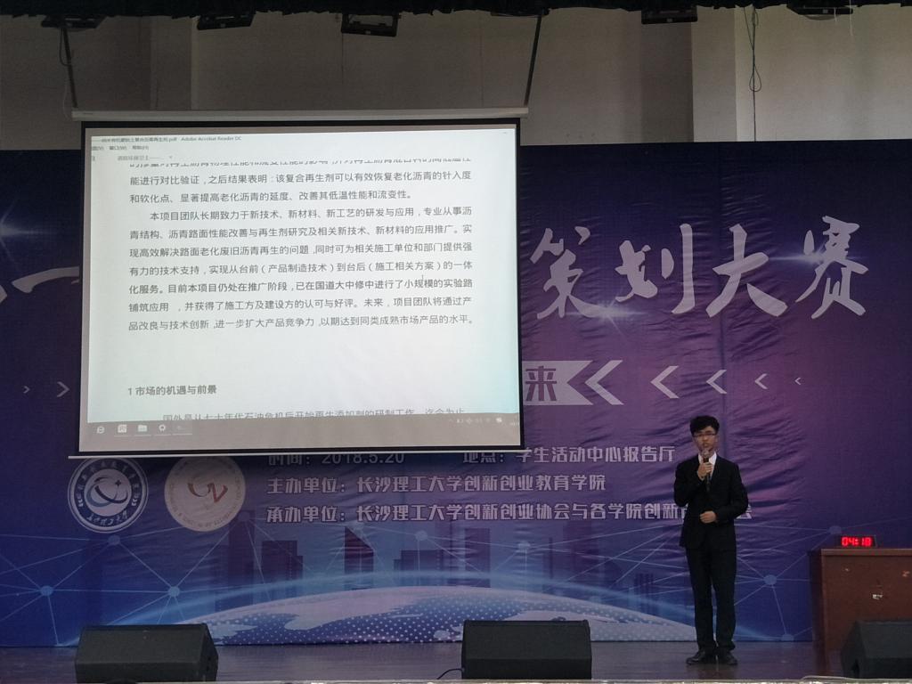 全校有260多支团队报名参加了比赛,经过初选和预赛,最终有20支决赛队伍脱颖而出,参加了决赛,参赛的答辩选手从项目背景、市场分析、核心竞争力、盈利模式等方面展示了各自的项目。充分利用了限定的时间,运用图像结合、数据分析等多种方式对各自的项目进行了讲解。各个项目将所学专业知识与互联网技术相结合,从环保、无人机、新型农业、道路维护等多个角度创新,并落实为详实的策划案。
