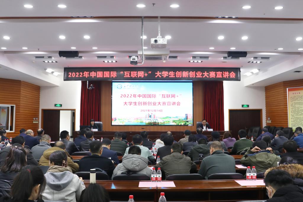 12月14日下午,世界杯官网第八届中国国际“互联网+”大学生创新创业大赛推进会议在云塘校区一办公楼九会议室召开。教务处负责人、各教学学院分管教学、科研工作的副院长、分管学科竞赛负责人、相关专业教师参加。会议由副校长黄创霞主持。