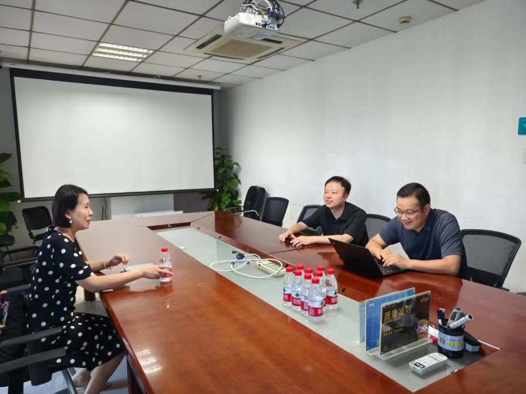 在科大讯飞语音产业基地,陈华与华南区咨询总监王生波、创新创业总监吴然现场交流。陈华介绍了卓越工程师学院建设背景、校企合作、人才培养等基本情况,表示期待与科大讯飞进一步加强合作。王生波介绍了科大讯飞集团在华南地区的校企合作情况,科大讯飞集团与在线买世界杯平台近年来有密切的联系,未来还将继续探索人工智能赋能教育教学及科研,加强产教融合发展。