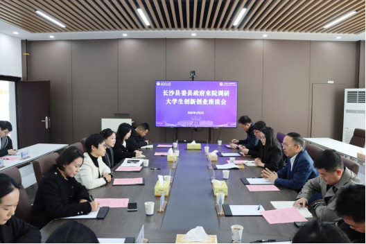 4月2日上午,长沙县委副书记、统战部部长、党校校长陶建军,长沙县委统战部副部长、工商联党组书记王行楚、共青团长沙县委书记胡金薇一行到我院调研大学生创新创业工作。卓越工程师学院院长韩艳、党委书记杨晨、党委副书记副院长陈华,大学生创新创业园企业代表等参加调研和座谈。会议由陈华主持。