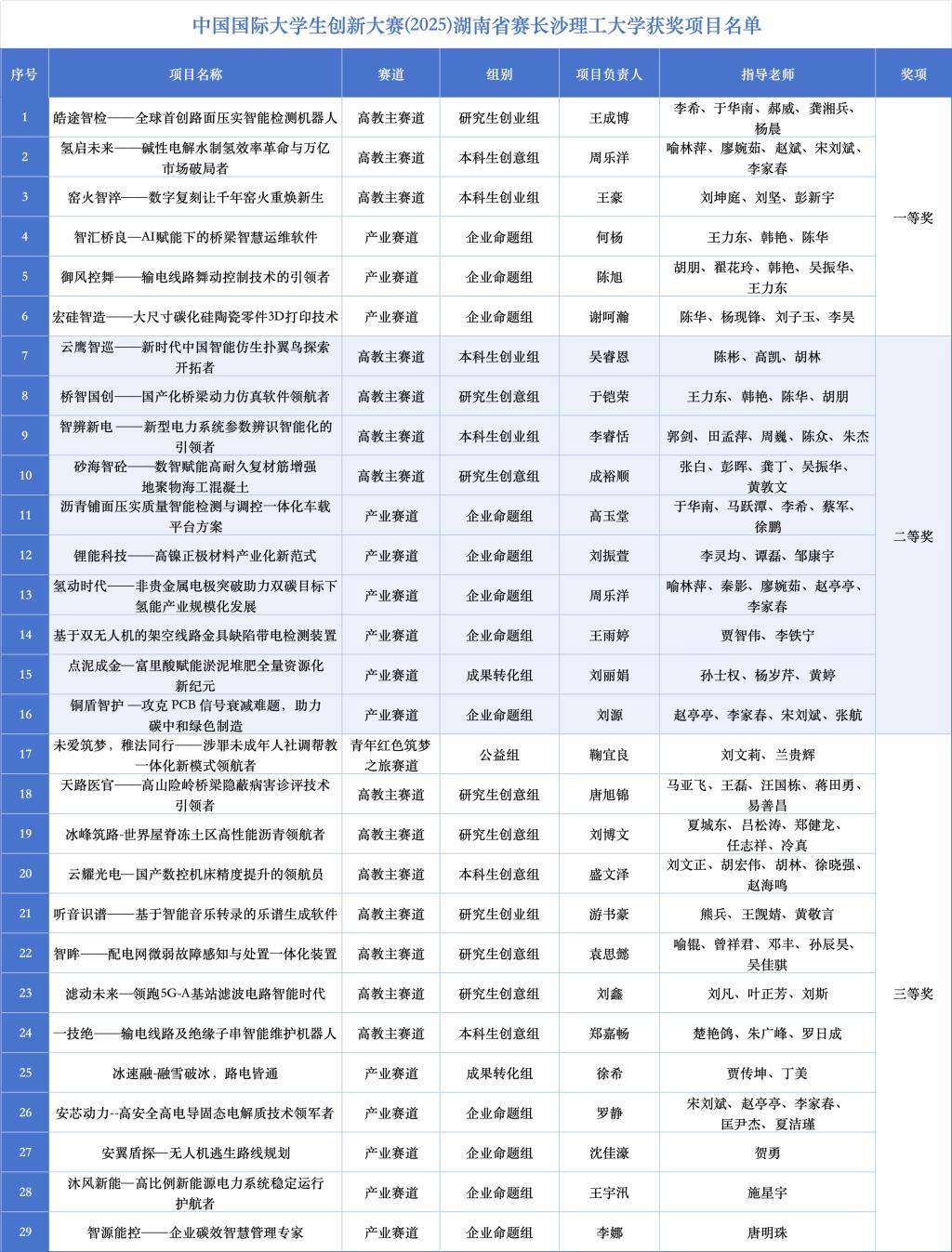 近日,中国国际大学生创新大赛(2025)湖南省赛在南华大学落下帷幕。世界杯官网入围现场赛的15个项目分获一等奖3项、二等奖4项、三等奖8项,产业赛道项目分获一等奖3项、二等奖6项、三等奖5项。
