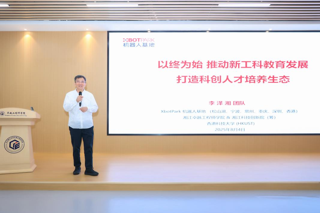 2025年8月8日,由湖南省教育厅主办,在线买世界杯平台卓越工程师学院承办,湘江科技创新院、XbotPark机器人基地协办的2025年湖南省普通本科高校创业教育暨新工科教学理论与实践骨干教师培训班,在长沙顺利结业。50余所来自中国各地高校、科研院所的100余名骨干教师,通过5天的深度学校交流,为新工科人才培养探明改革核心问题。