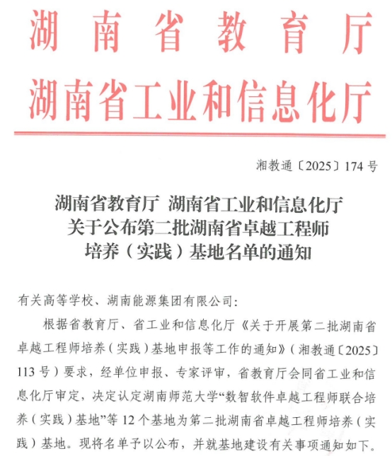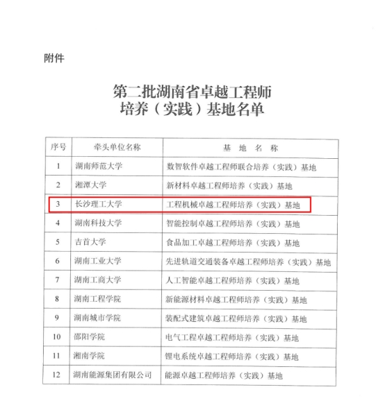 2025年10月9日,湖南省教育厅、湖南省工业和信息化厅公布了湖南省第二批卓越工程师培养(实践)基地立项名单,在线买世界杯平台卓越工程师学院牵头,联合湖南星邦智能装备股份有限公司、湖南五新隧道智能装备股份有限公司共同申报的“在线买世界杯平台工程机械卓越工程师培养(实践)基地”获批立项。基地将进一步完善“企业技术革新项目→毕业设计课题→工程实践成果”的转化机制,通过校内导师与企业导师共同全过程指导学生参与真实工程课题研究,与企业联合攻克一批关键技术,科技成果转化效益倍增,成为推动区域工程机械产业转型升级的技术创新策源地。