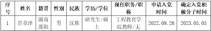 工程教育学院直属党支部关于确定甘章泽同志为入党积极分子的情况公示