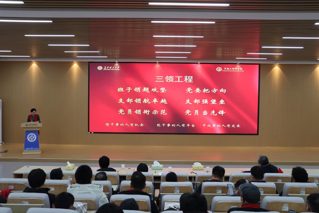 院党委书记杨晨在讲话中指出,过去一年,学院党委坚持以“三领工程”为总抓手,系统构建“班子领题攻坚、支部领航卓越、党员领衔示范”的工作格局,将党的政治优势、组织优势深度融入卓越工程师培养全过程,在育人模式改革、创新创业生态培育、安全稳定防线构筑等方面取得了扎实成效,实现了党建引领与事业发展的同频共振。杨晨强调,面向未来,学院党委将以“三领工程”为依托,营造风清气正、干事创业好环境,让想干事的人有机会、能干事的人有平台、干成事的人有发展希望全体教职工同心同德、建言献策,共同把学院建设好、发展好。