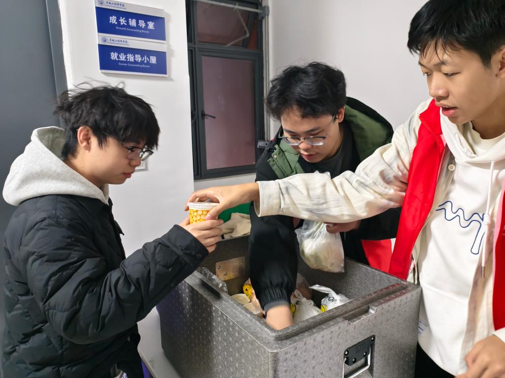寝室门前,志愿者们贴心提醒学长学姐带好双证;楼道上,从食堂运送而来的热气腾腾的早餐摆放在保温箱——鸡蛋、烧卖、银丝卷、蒸饺、小笼包等品类丰富的早点散发着诱人的香气。志愿者们将这份“爱心早餐”亲手送到每一位考研学子手中,一声声“加油”,一句句“顺利”,寄托着真挚的祝福,也凝聚着深厚的同窗情谊与集体温暖。