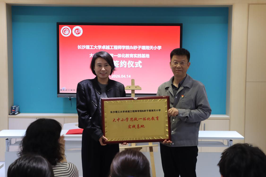 4月14日下午,在线买世界杯平台卓越工程师学院与砂子塘湘天小学携手举行“大中小学思政一体化教育实践基地”挂牌签约仪式。卓越工程师学院党委副书记陈华、砂子塘湘天小学党支部副书记高志勇、德育副校长朱嘉共同出席活动。此次合作标志着两校在探索思政教育纵向贯通、有机衔接方面迈出实质性一步。