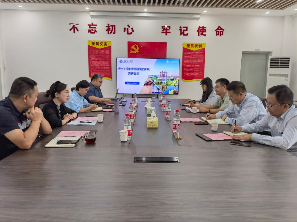 9月24日上午,常州工学院创新创业学院直属党支部副书记、副院长(主持工作)张弘、副院长肖贤建、教学部主任吕敏、办公室主任狄清琳一行4人来院交流。学院党委书记杨晨、党委副书记副院长陈华、副院长向永生、吴钢参加交流会。会议由吴钢主持。