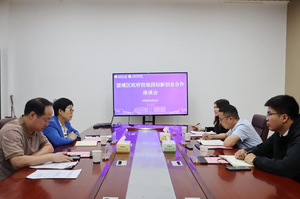 4月24日上午,望城区科技局党组书记文侠、望城经开区创新创业服务中心副主任张照景、长沙大学生创业促进会秘书长张静姝来院开展校地园创新创业合作座谈会。院长韩艳、副院长杨现锋参加会议。会议由杨现锋主持。