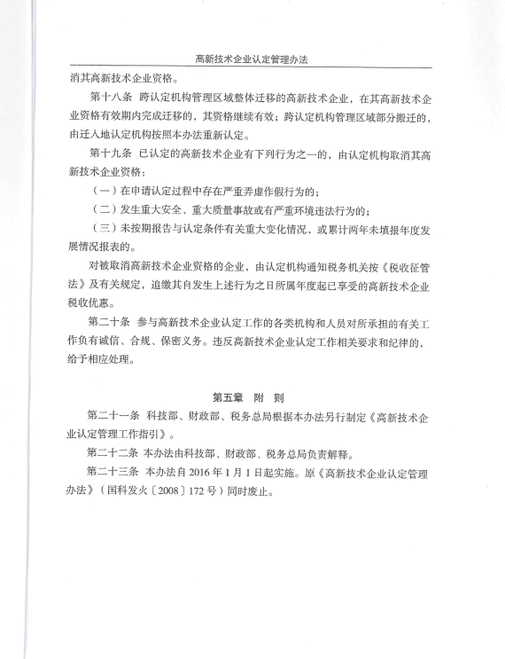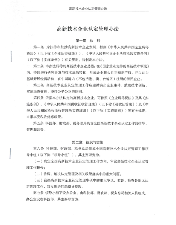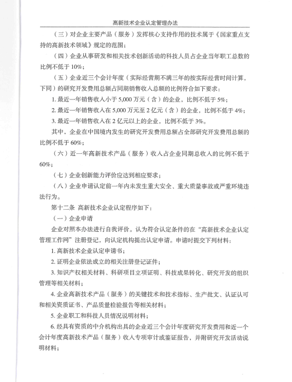 高新技术企业认定管理办法