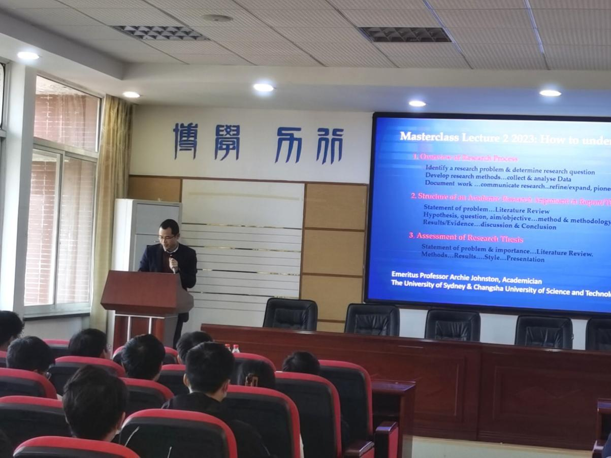 11月23日下午,澳大利亚科学技术与工程院院士、在线买世界杯平台湖湘学者特聘教授Archie James Johnston在工一B503学术报告厅为学院师生做《How to undertake research》主旨报告。报告会由学院副院长王文主持,学院教师代表、研究生近100人参加。
