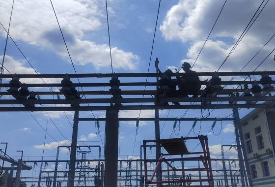 接着跟随师傅的脚步,实践队员们前往宝庆变电站更换变压器的工作场地,场地内师傅们各司其职,顶着烈日,穿着密不可透的工作服和牢固但闷热安全帽在工作中挥汗如雨。师傅们始终坚守在自己的工作岗位上,这就是时代所推崇的工匠精神!实践队员们也不敢懈怠,跟着廖师傅和余师傅学习变电站设备,包括断路器、隔离开关、电流互感器、避雷器等工作原理。