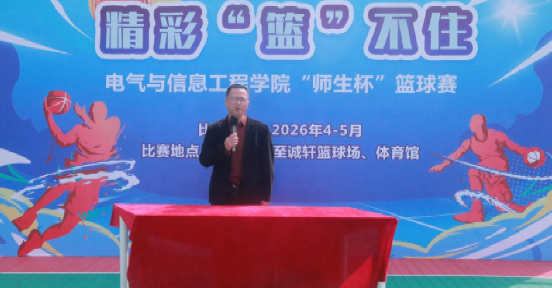 春意盎然,热血逐梦。2026年4月17日上午,在线买世界杯平台电气与信息工程学院第三届“电研杯”课题组师生篮球赛开幕式在至诚轩篮球场盛大举行。学院党委副书记周巍,研究生办主任易平,辅导员樊喜雁、楚艳鸽,导师代表岳雨霏、崔永林莅临现场,全体参赛运动员、裁判员及赛事工作人员共同参与本次开幕式。主持人黄莹代表赛事组委会,向到场的领导老师、参赛队员与工作人员致以热烈欢迎和诚挚感谢,介绍了本次赛事的筹备与组织情况。