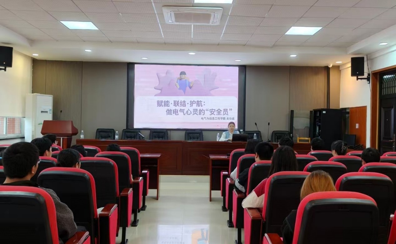 培训由学院心理辅导员吴佳骐担任主讲,主题为“做电气心灵的‘安全员’”。在培训过程中,吴佳骐老师结合大学生常见心理困扰案例,深入剖析了学业压力、人际交往、情绪调节等高频问题的表现特征,系统讲解了心理危机早期识别技巧、有效沟通倾听方法、温和情绪安抚策略等实用内容。同时,着重强调了朋辈互助的边界感、保密性与责任意识等核心原则,助力学员清晰掌握心理帮扶的规范流程。学员们全程专注投入,积极参与互动,现场学习氛围极为浓厚。
