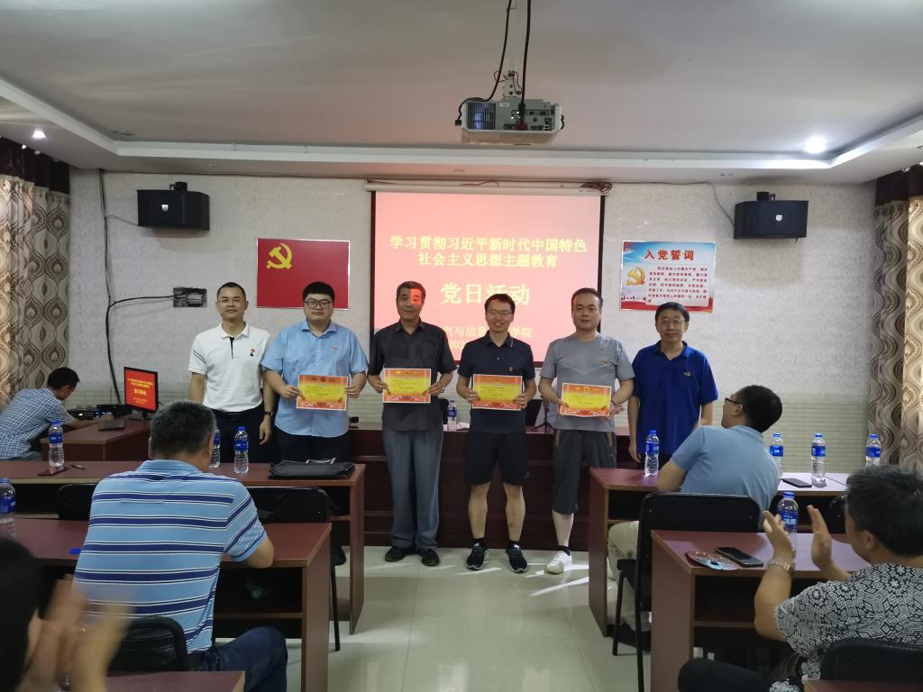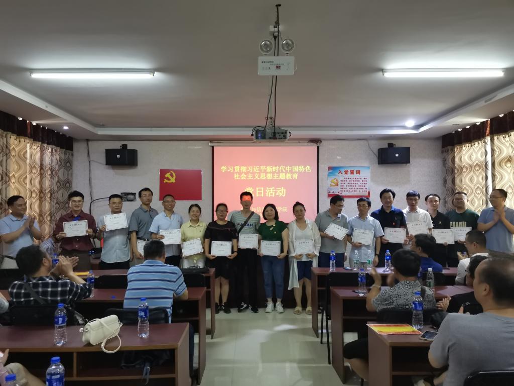 下午召开了“七一”表彰大会和学习交流活动。会上,伍接朝宣读了学院“七一”表彰决定,带领全体党员重温入党誓词并讲话,院领导陶双、马瑞、姜飞、王文为受表彰的先进集体和优秀个人颁发了奖状和荣誉证书。