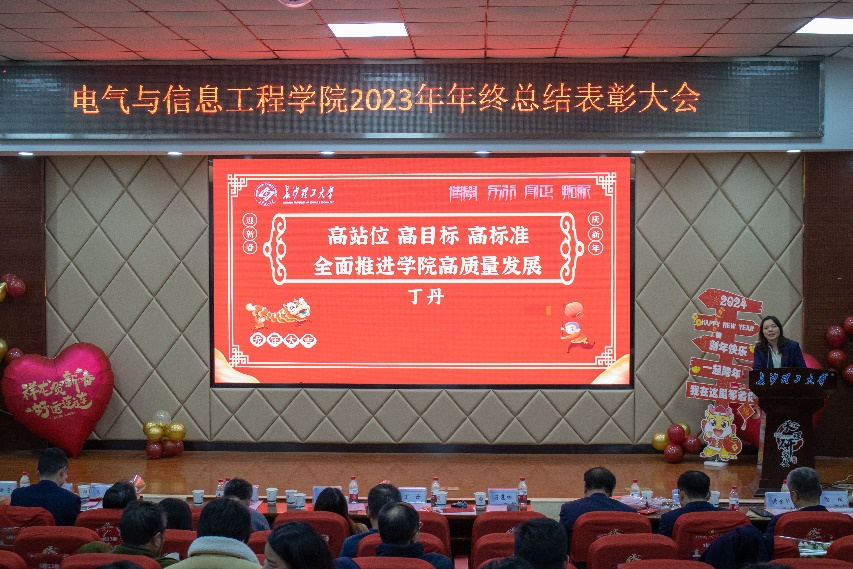 最后,丁丹以“高站位,高目标,高标准,全面推进学院高质量发展”为主题做了会议总结,她提出我们教职工应更加明确如何实现人才的高质量发展,进一步提高核心竞争力。同时,她强烈呼吁全院师生在学校“百强”大学建设和高质量发展中贡献电气智慧和方案,努力建成国内电气领域拔尖人才培养基地和科技创新高地。