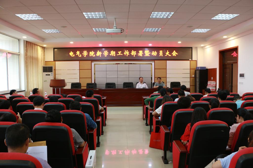 9月12日下午,电气学院在工一B503召开全院教职工新学期工作部署暨动员大会。会议由学院党委书记符慧林主持,校长助理曾祥君、学院领导班子成员及全院教职工与会。