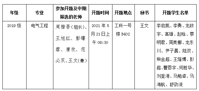 电气工程五组开题及中期筛选考核安排已公示,请大家提前填写好《在线买世界杯平台研究生论文开题报告表》与《研究生中期筛选考核评定表》,做好答辩准备。