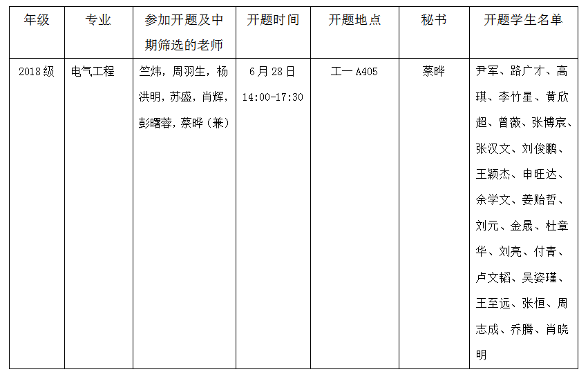 2020年电气与信息工程学院研究生学位论文开题及中期筛选安排表(五)