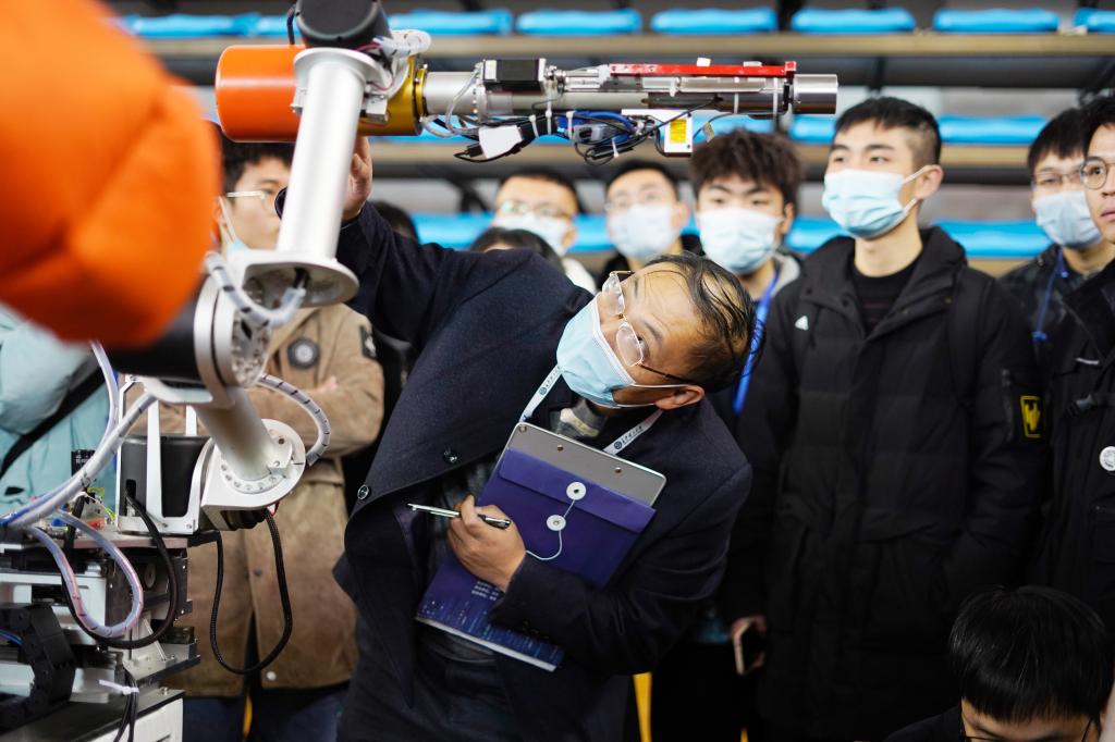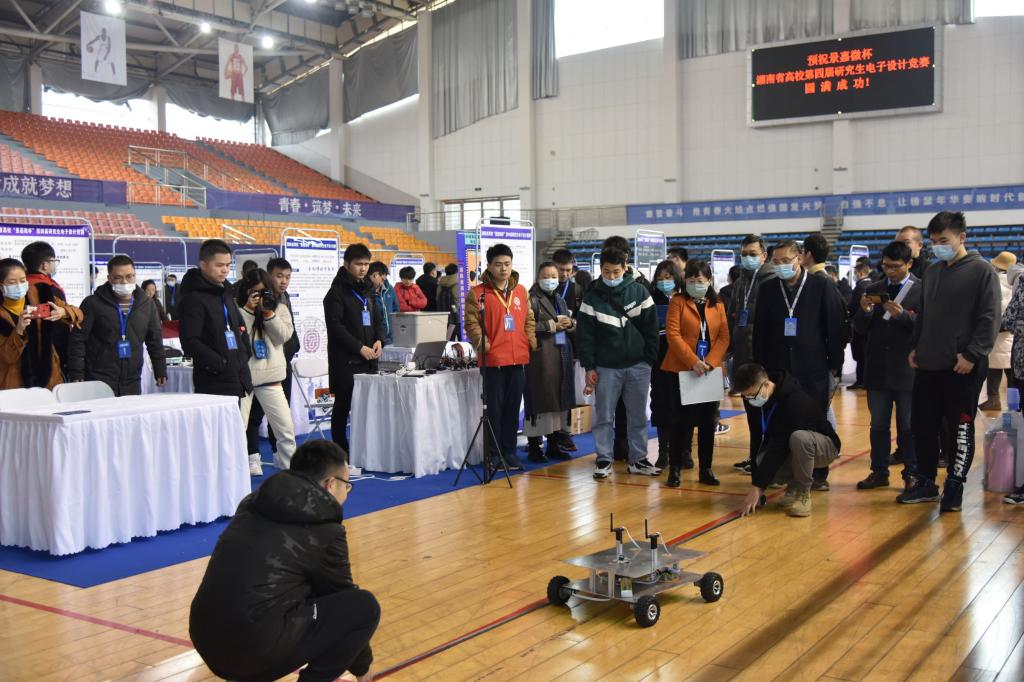 本届研究生电子设计大赛由湖南省教育厅主办,世界杯官网承办,竞赛组委会设在电气学院。来自国防科技大学、中南大学、湖南大学等16所高校的138支队伍参赛,是历届参赛学校和队伍最多的一届。竞赛分为作品初评、现场展示、答辩评审三个环节。在作品展示现场,评审专家们观摩、测试作品,认真严谨地进行评审。场面热闹非凡,同学们精彩的作品也吸引了不少老师和同学们驻足观看。设计出的作品大到核电废料的转运问题,小到个人驾驶过程中识别交通标志的小麻烦,研究生都能用科技帮你解决。作品紧贴我国产业发展方向和人民生活实际需求,涉及人工智能、物联网、智能制造、无人机、工业机器人和大数据等多个前沿领域,涵盖了电路设计、系统集成和算法研究等不同设计层次。