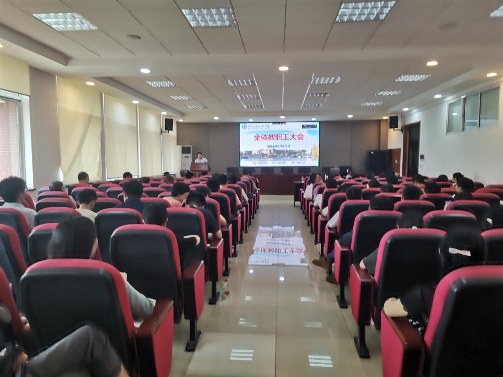7月8日,学院在工一B503报告厅召开教职工大会,总结上半年工作,部署暑期及下半年重点工作任务。会议由院党委书记丁丹主持,全体教职工参会。