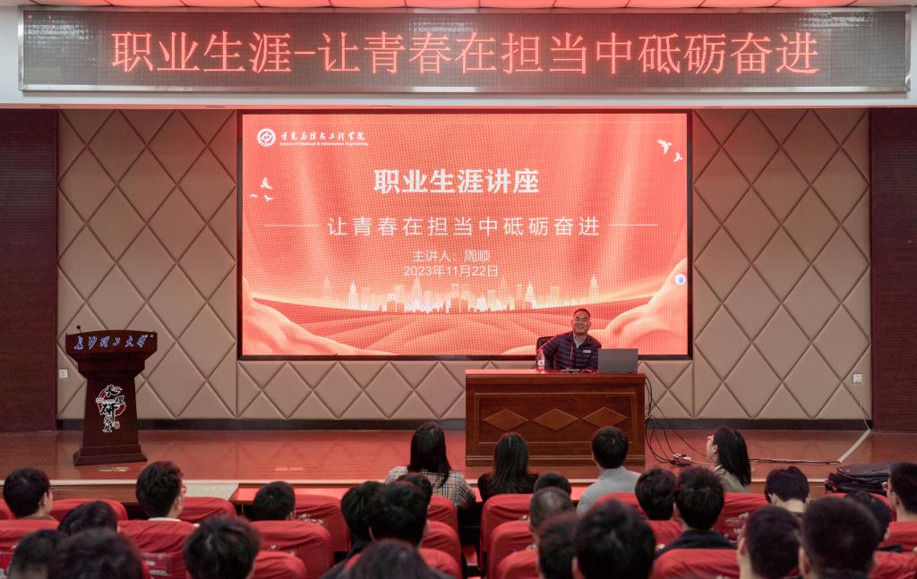 报告中,周顺结合自身求学、工作经历寄语师弟师妹,希望大家珍惜伟大时代,勇担“人民电力为人民”的时代使命,在时代的洪流中大胆追梦;希望大家正确认识自我,明确人生目标,做好职业规划;希望大家多一份坚持,不畏困难,全力以赴,勇做命运的博弈者;希望大家珍惜求学时光,着力提升专业素养、培养逻辑思维能力,练就过硬专业本领;希望大家学会感恩,厚植长理情谊,珍惜师生、同学缘分。