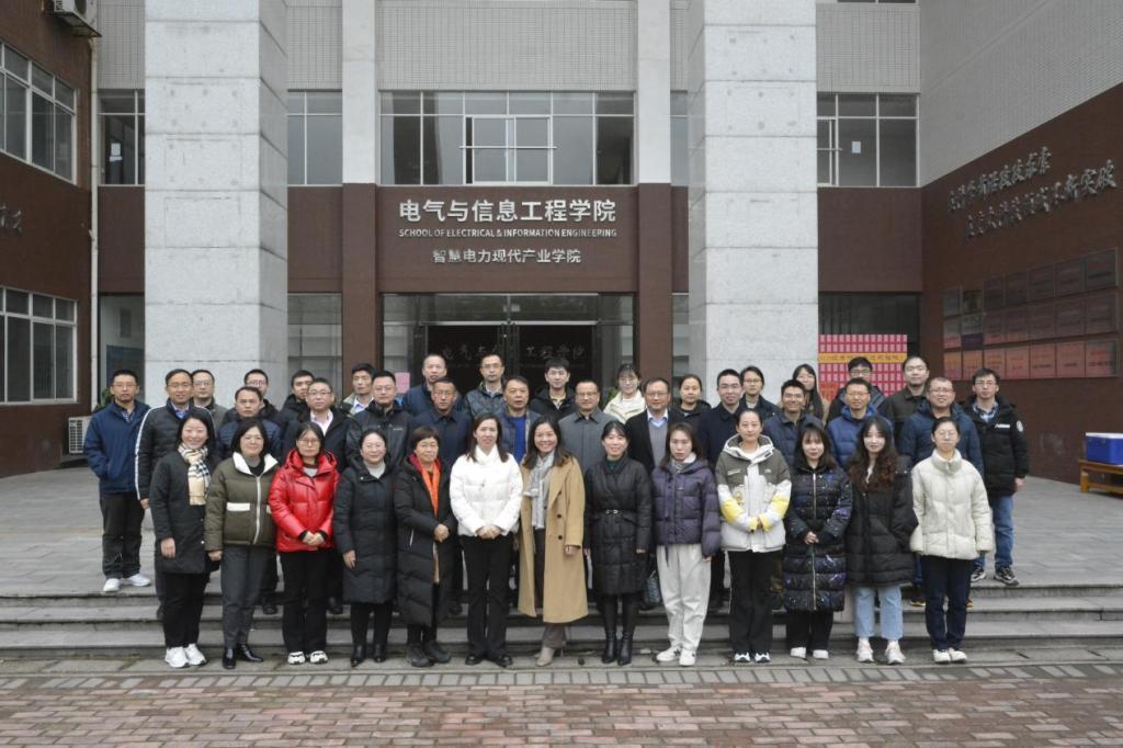 参观结束后,校企双方在工一B402召开交流会。丁丹对国家能源集团湖南公司领导的到来表示热烈欢迎,并期待双方能够在产学研合作方面取得更多成果。副院长姜飞对电网防灾减灾全国重点实验室建设情况进行介绍,副院长王文从研究方向、科研成果、人才培养等方面对电气学院科研情况进行汇报。能动学院学院副院长何建军、计通学院副院长章登勇、经管学院副院长刘坚分别介绍了各自学院在科研领域的发展现状和突出成果。