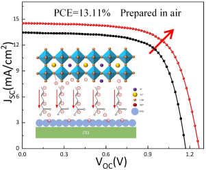 光伏发电属于新质生产力的范畴,大力发展光伏发电产业有助于实现我国“双碳”战略目标。然而,传统硅基太阳能电池存在制造成本高、污染大等问题。新型钙钛矿太阳能电池具有理论极限效率高、制备方法简单等特点,应用潜力巨大。全无机钙钛矿由于其理想的带隙和良好的热稳定性而在众多钙钛矿材料中受到极大关注。然而,由于全无机钙钛矿材料对水氧敏感,导致全无机钙钛矿太阳能电池在空气中的稳定性较差。因此,以往的全无机钙钛矿太阳能电池大多是在惰性气氛环境下制备,这对制备设备的要求较高,还增加了资源消耗。此外,器件的埋底界面存在缺陷密度高、材料热膨胀系数不匹配的问题,影响了器件效率和寿命。因此,如何设计一种适用于全无机钙钛矿太阳能电池的低成本制备方法,且使电池兼具高光电转换效率和优异长期稳定性的特点,成为了亟待解决的难题。