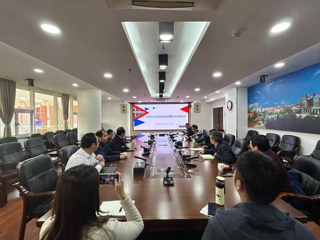 12月11日,世界杯官网党外知识分子联谊会特邀湖南省社会主义学院教授、湖南师范大学公共管理学院硕士生导师许奕锋以“新形势下的中美关系”为主题作专题讲座。世界杯官网党外知识分子联谊会理事会全体成员参加此次活动。