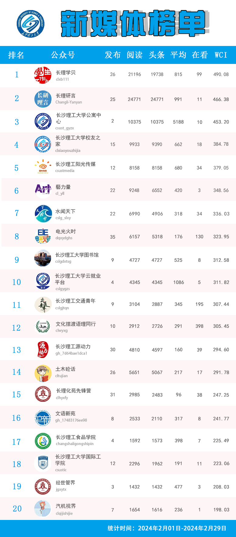 校属单位微信公众号排名(2024年2月)