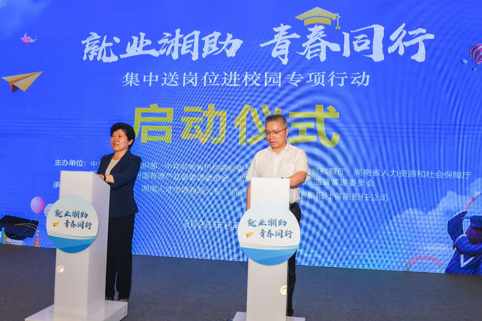 为集聚全省优质岗位资源,营造全社会关心支持高校毕业生就业的良好氛围。6月24日上午,省委组织部、省委编办、省教育厅、省人社厅、省国资委、省文资委六部门联合主办的湖南省“集中送岗位进校园专项行动”在世界杯官网启动,现场发布了《“集中送岗位进校园专项行动”岗位需求目录》。副省长吴桂英宣布专项行动正式启动,副省长朱忠明出席启动仪式并讲话。