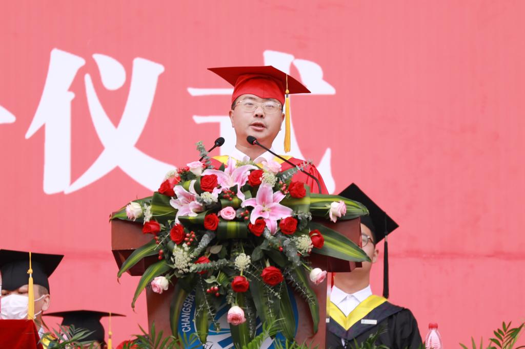 校长曹一家致欢送辞。他向圆满完成学业的5716名本科生和1027名研究生表示热烈祝贺,向所有为毕业生健康成长付出关爱和辛劳的教职工以及默默守护的家长致以衷心感谢和崇高敬意。