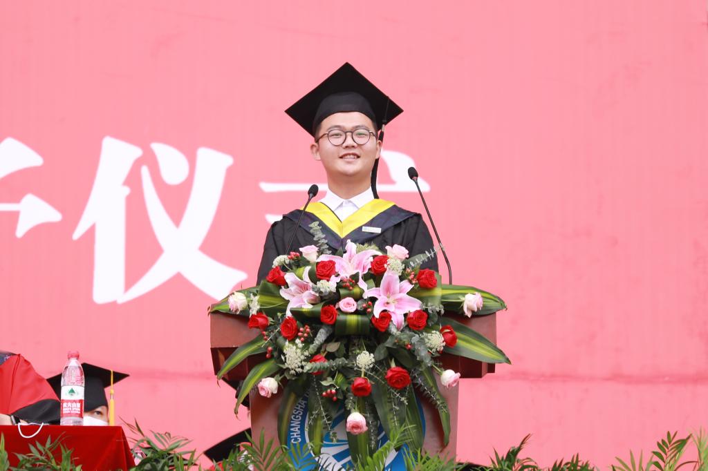 回首这个格外漫长的寒假,曹一家深情地说,“我每天牵挂着身处五湖四海或异国他乡的同学们,最大的希望就是你们都平安无恙!你们不在学校的日子,我时常瞭望窗外,少了你们的忙碌穿行,整个学校都显得过于安静”。致辞中,他提到毕岚溪、李杨帆、邹武、刘乐瑶等同学逆势而上取得硕果累累,饱含骄傲与欣慰。他勉励同学们无惧风雨,在实现中华民族伟大复兴中国梦的新长征路上奋勇搏击,同时也对广大毕业生提出了三点希望:一是以“利他”“无我”树立远大理想;二是凭“力行”“实干”激扬奋进人生;三是用“磨炼”“锻造”增长卓越才华。