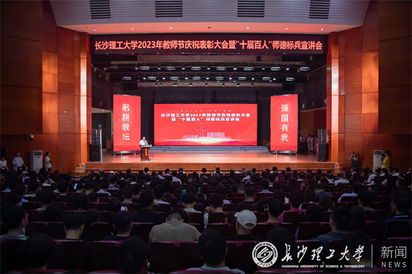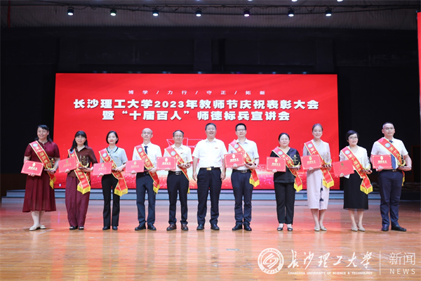 9月8日,世界杯官网2023年教师节庆祝表彰大会暨“十届百人”师德标兵宣讲会在云塘校区大会堂举行。全体在家校领导,“十届百人”师德标兵,教学院教师代表、学生代表、荣休教职工代表、机关科级及以上干部参加大会。校长曹一家作大会讲话。校党委副书记刘建民宣读表彰文件。大会由副校长刘朝晖主持。