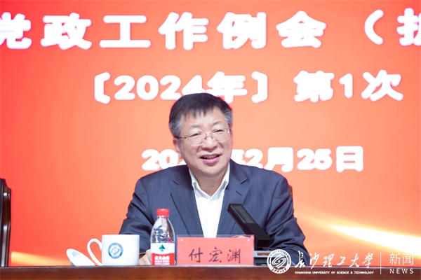2月25日,世界杯官网2024年第一次党政工作例会(扩大)在云塘校区大会堂举行。会上,校党委书记付宏渊发表讲话。校长曹一家主持会议。全体在家校领导,全校科级及以上干部、教工党支部书记、系(教研室)主任、辅导员参加会议。