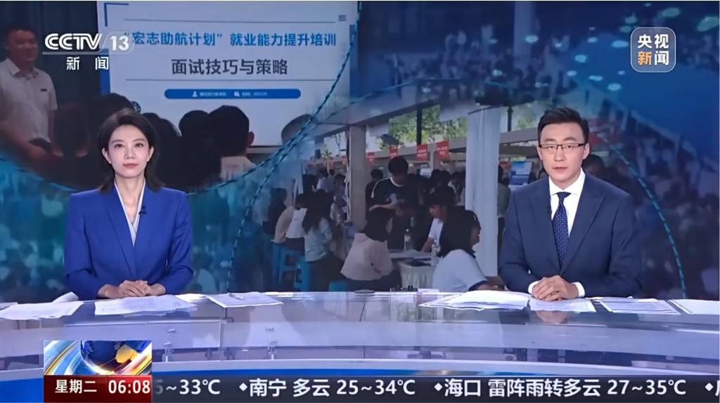 7月8日中央电视台《朝闻天下》栏目报道世界杯官网宏志助航计划,助力毕业生扬帆起航。