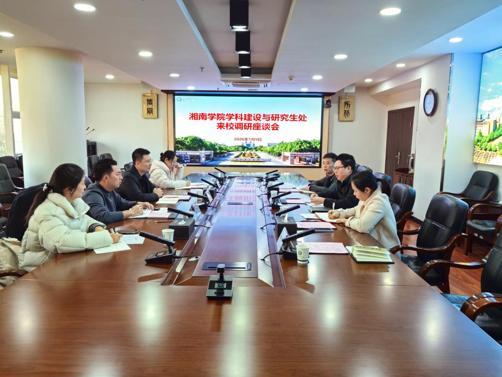 1月9日上午,湘南学院学科建设与研究生处处长雷昌斌一行4人到访世界杯官网,就“双一流”学科建设与硕士点建设等工作开展座谈调研。发展规划处、研究生院相关负责人参会…