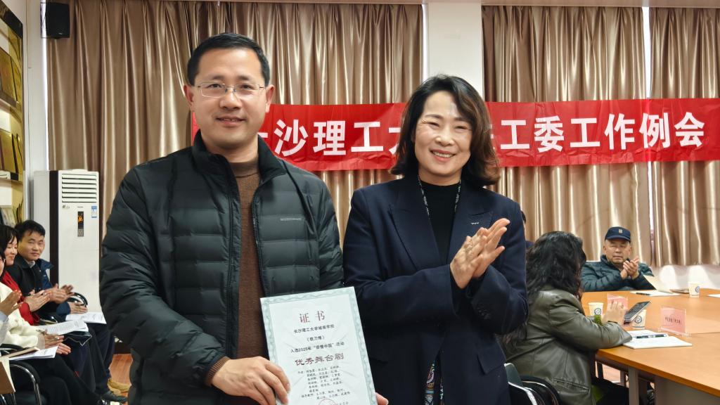 方琼为荣获教育部关工委2025年“读懂中国”活动优秀舞台剧的城南学院颁发了荣誉证书。