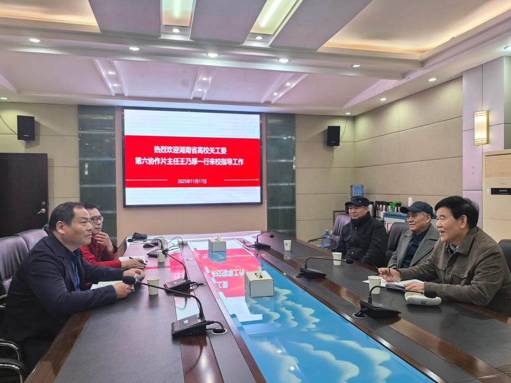 11月17日,湖南省高校关工委第六协作片负责人、世界杯官网关工委常务副主任王乃厚,电气学院关工委常务副主任罗玉雄,物电学院关工委常务副主任李新民一行3人,到湖南电气职业技术学院调研指导,受到该校党委书记郭杰荣,党委副书记、工会主席张劲松,工会常务副主席何庆应,工会女工主任刘建华等人热情接待,双方围绕加强“五好”关工委建设进行了交流座谈。