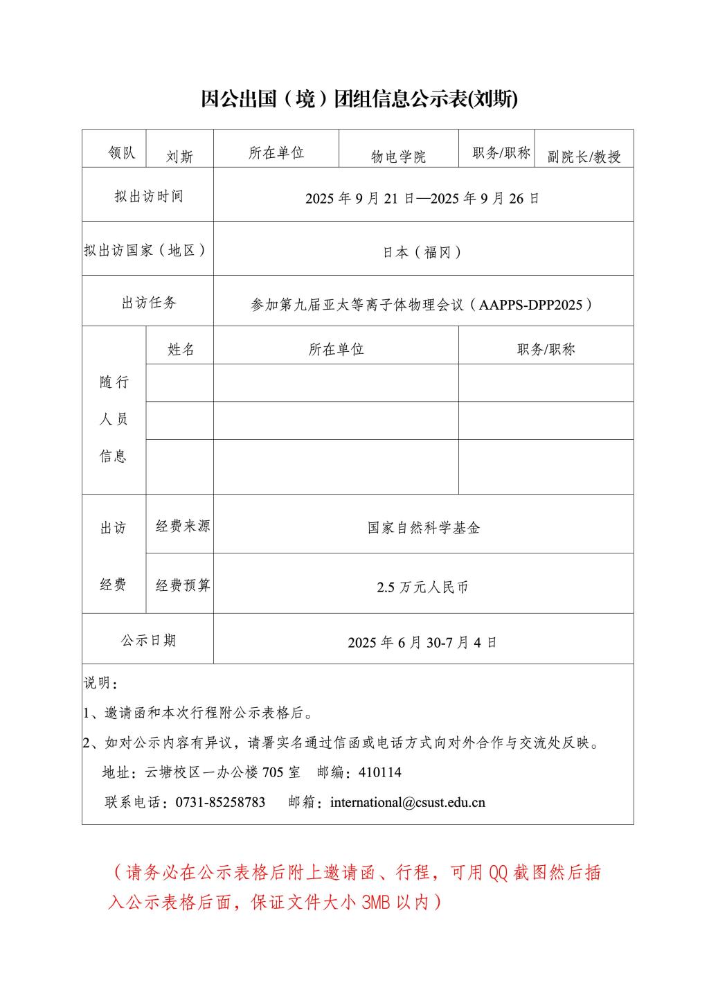 因公出国(境)团组信息公示表(刘斯等1人)