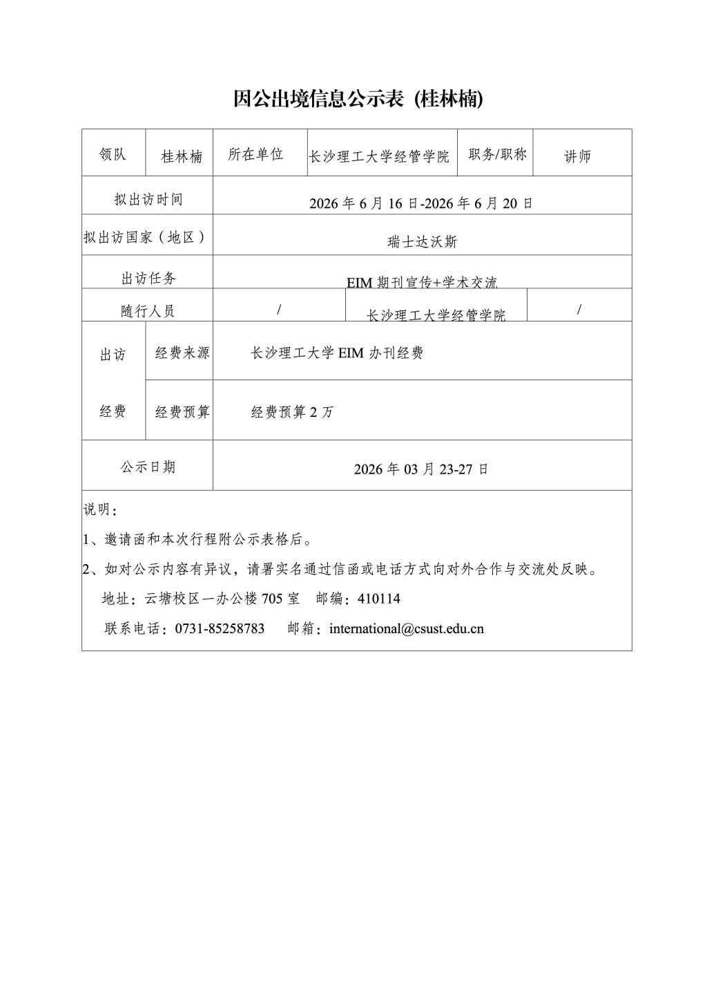 因公出国(境)团组信息公示表(卜蓉伟1人)