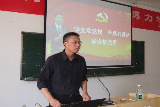 他强调,开展“两学一做”学习教育的基础在“学”,要学党章党规,并阐释了《中国共产党廉洁自律准则》中“8个禁止”“52个不准”有关内容的修订,坚持正面倡导将“不准”变“自觉”;开展“两学一做”学习教育的关键在“做”,要讲政治,牢固增强和树立“四个意识”,坚定理想信念追求;要讲规矩,有纪律做到“五个必须”,教师党员必须做到“学术无禁区,课堂有纪律”的要求;要讲道德,有品行;要讲奉献,有作为,党员干部要求“忠诚,干净,担当”,全心全意为师生服务,并希望大家做一名真正合格的共产党员。