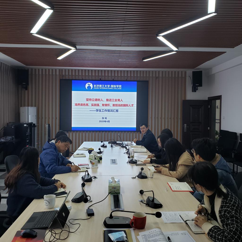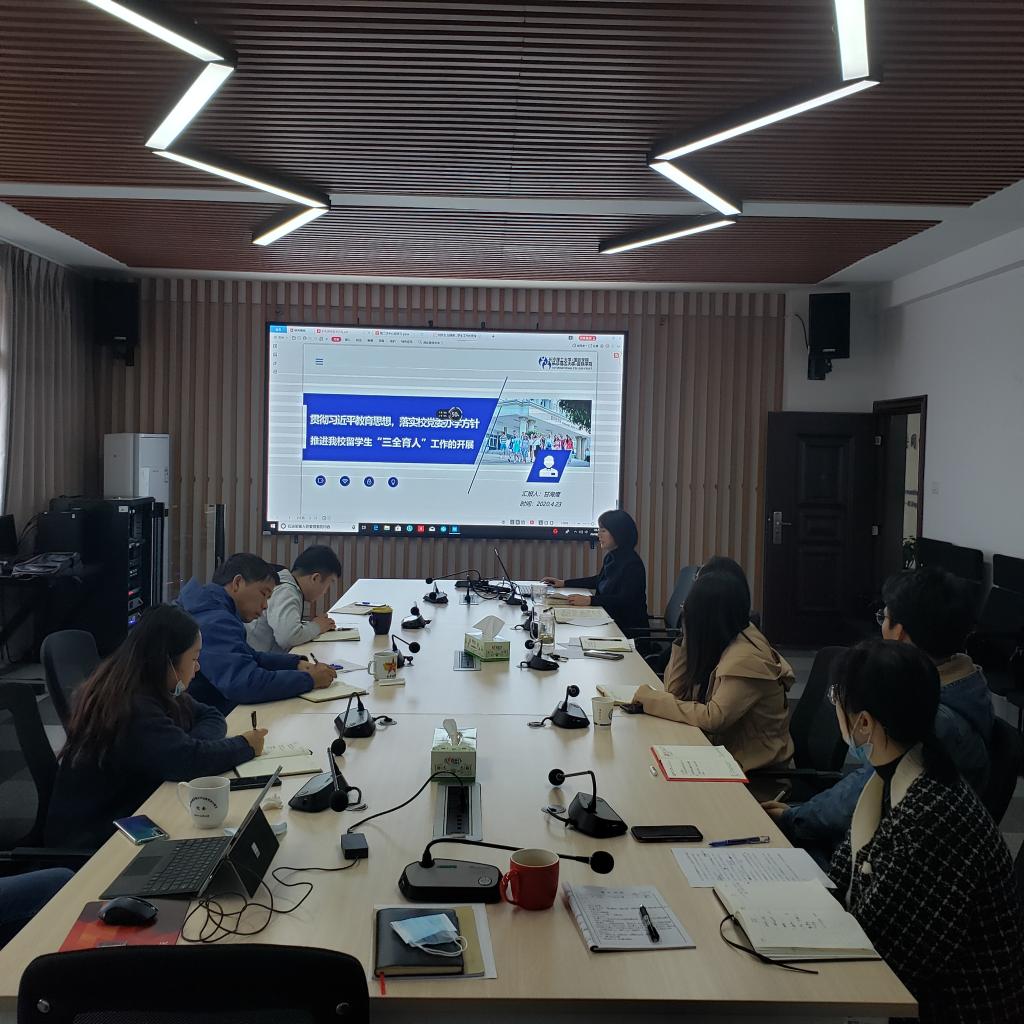 为深刻领会习近平总书记的教育思想要义,找准学院在贯彻教育发展新思想新理念新战略的切入点、着力点和落脚点,扎实推进学院“三全育人”工作,4月23日上午,国际学院党总支召开本年度第二次中心组理论学习,专题研讨我院学生工作的现状与对策。书记刘安生主持并作辅导报告,副书记兼副院长张锐和副院长甘海鹰作中心发言,全体学生辅导员列席学习。